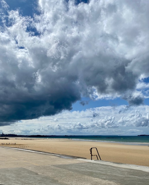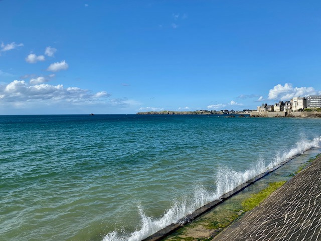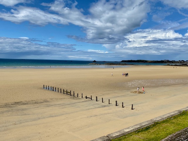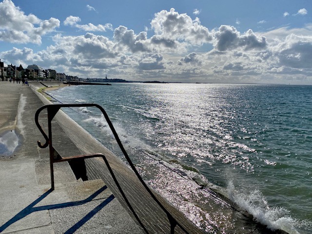 Den heutigen Ruhetag nutzten wir für einen Ausflug nach Dinard. Man erreicht Dinard über das imposante Gezeitenkraftwerk La Rance. Das Städtchen ist bekannt für seine schönen Villen aus der Belle Epoque Zeit. In den 1850er Jahren fanden immer mehr reiche Familien gefallen an diesem Ort und liessen sich hier prächtige Villen errichten. Viele Maler wie Auguste Renoir oder Henri Rivière holten sich hier ihre Inspirationen. Und wie sollte es auch anders sein auch Pablo Picassos war fasziniert von den badenden Frauen, die sich in den 1920er Jahren an der Smaragdküste immer freizügiger zeigten. Mehr als 50 Bilder badender Frauen malte Picasso in Dinard. Wir das heisst vor allem ich nutzte die letzte Gelegenheit für‘s Shopping. Ab morgen ist fertig mit shoppen – ganz nach dem Mantra von René – jedes Gramm zählt!!! Für Markus Utiger fanden wir auf dem Markt von Dinard sogar noch die weltbekannten Noirmoutier Kartoffeln. Ist auch eine Premiere, dass wir Kartoffeln von den Ferien mit nach Hause bringen! Den Nachmittag verbrachten wir wie zwei Alte auf dem Bänkli an der Promenade von Saint-Malo und schauten dem Treiben am Strand zu. Bei einem Gläschen Champagner und einem feinen Essen genossen wir unseren letzten gemeinsamen Abend. Morgen gilt‘s ernst – wandern mit vollem Rucksack und ohne Mitfahrgelegenheit, wenn‘s zu viel werden sollte!!!