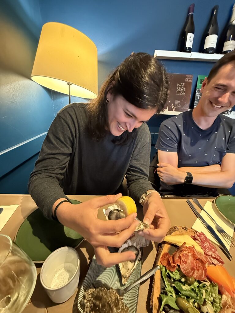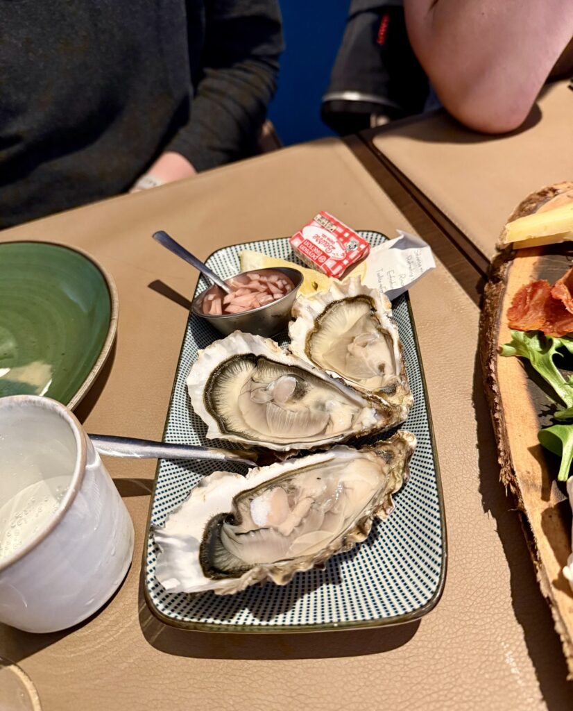 Eine Aufgabe hatten wir allerdings noch zu bewältigen. Manuela und Andy sind nun seit zwei Wochen in der Bretagne unterwegs und an unzähligen Austernzuchten vorbei gekommen, aber probiert hatten sie noch keine. Heute war also die letzte Gelegenheit bevor die beiden wieder heimwärts müssen. Gewisse Fragen an ChatGPT was wir da genau essen, machte das Vorhaben nicht einfacher.