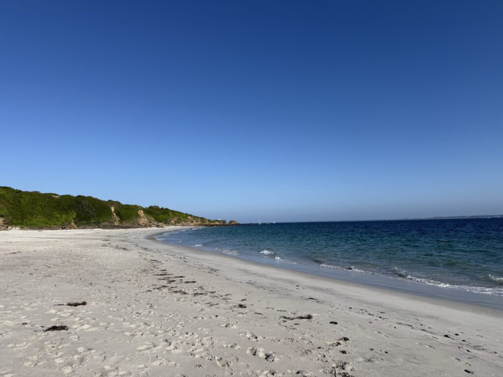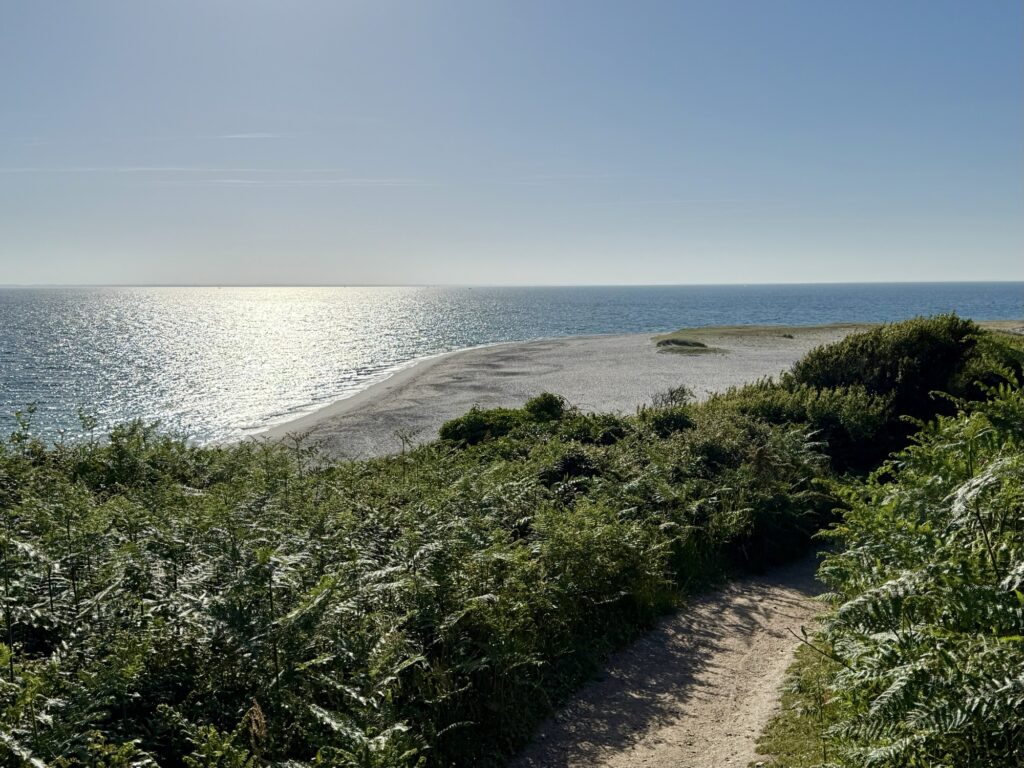 Zuerst ging es an den Strand Les Grands Sables. Dieser Strand ist einer von sehr wenigen konvexen – also nach außen gewölbten – Stränden Europas. Dass der Strand zum Meer hin gewölbt ist, sieht man am besten von oben.