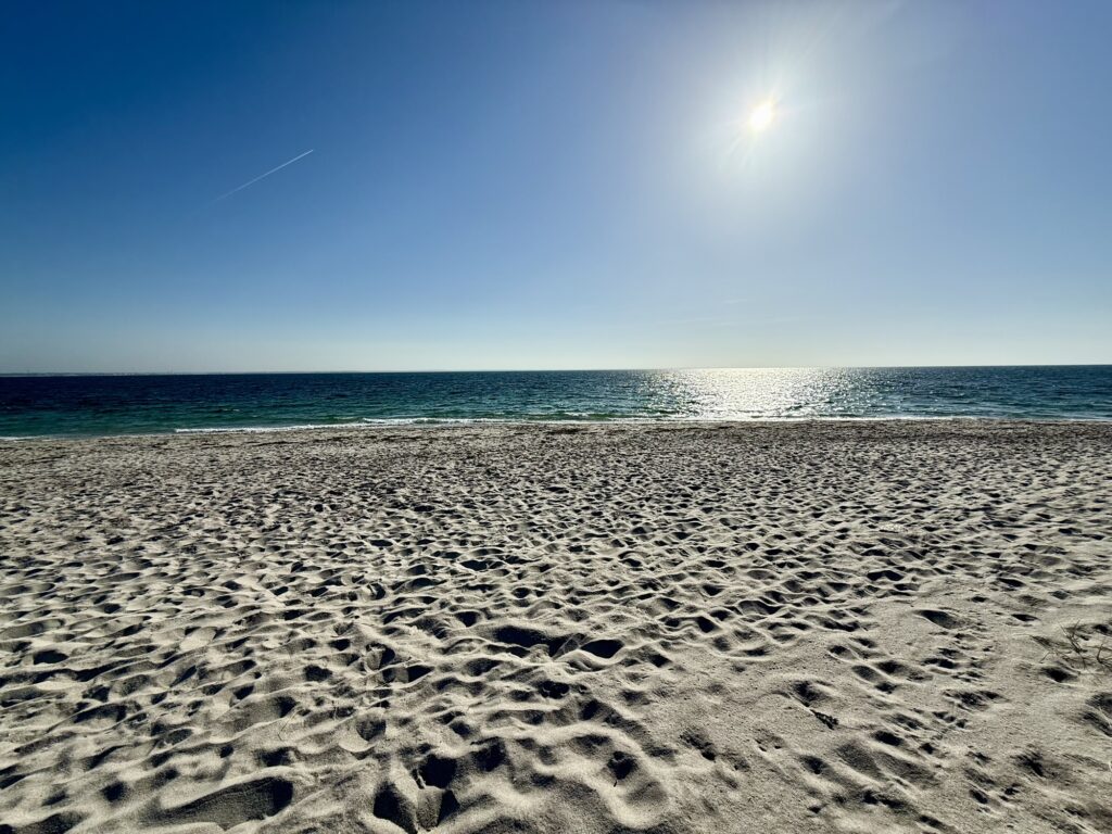 Befindet man sich am Strand nimmt man das nicht wirklich wahr. Es war zwar erst 9:30, aber ich hätte schon erwartet, dass noch andere Leute den Weg hier hin finden. So hatte ich den ganzen Strand für mich alleine. Leider war das Meer etwas wild und so verzichtete ich auf einen morgendlichen Schwumm.