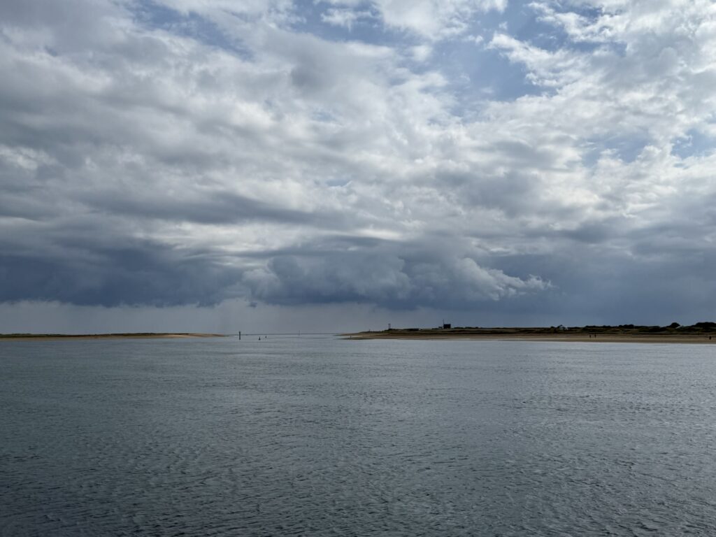 Mein Weg führt mich morgen an der Mündung des Ria d‘Étel und der Wanderdüne vorbei. Hoffentlich ohne düstere Wolken.