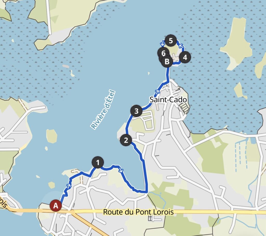 Ursprünglich wäre die heutige Etappe etwa 25 km gewesen und hätte mehrheitlich durch das Landesinnere geführt. Also vermutlich nicht eine besonders attraktive Route. Zudem war heute auch mit Regen zu rechnen. So entschloss ich mich mit dem Taxi bis nach Pont Lorois zu fahren. Von dort ging es dann nach Saint Cado. Saint Cado liegt eigentlich nicht auf der Route des GR34, aber gilt als eine der schönsten Sehenswürdigkeiten der Region. Tja jetzt fehlt halt nur noch die Sonne.