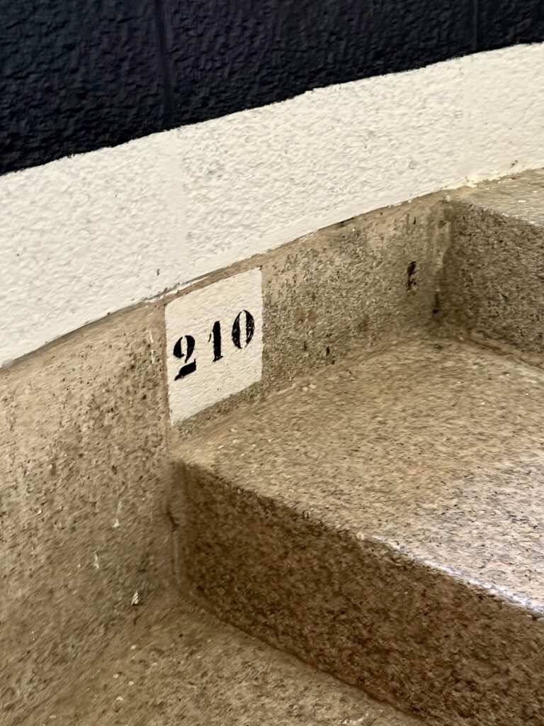 Als ich dann sagte ich sei aus der Schweiz, tönt es hinter mir: trois fois! Es war ein Ehepaar aus dem Wallis und zwar aus dem französischen Teil. Sprachlich also klar im Vorteil! Die beiden sind mit dem Camper unterwegs. Nach einem kurzen Schwatz nahm ich dann die 210 Stufen in Angriff. Mit dem Ticketkauf bekommt man noch ein Seil mit einem Ball dran. So haben sie unter Kontrolle wieviel Leute auf dem Turm sind.
