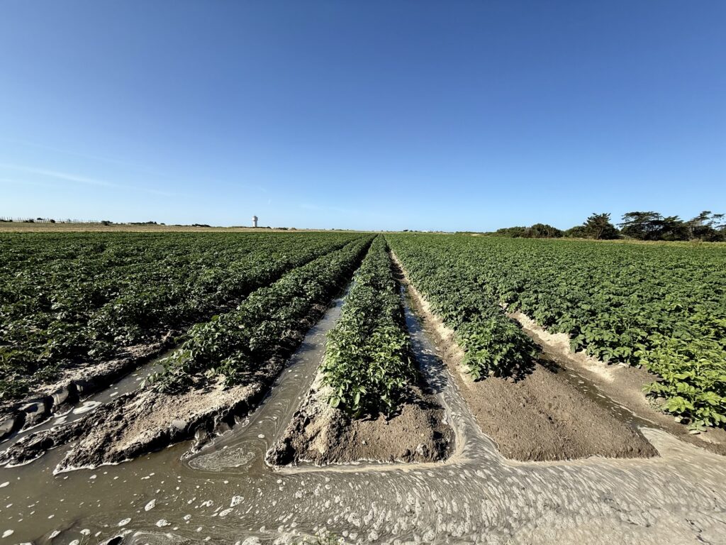 Hier wachsen gut bewässert bereits die nächsten Kartoffeln heran.