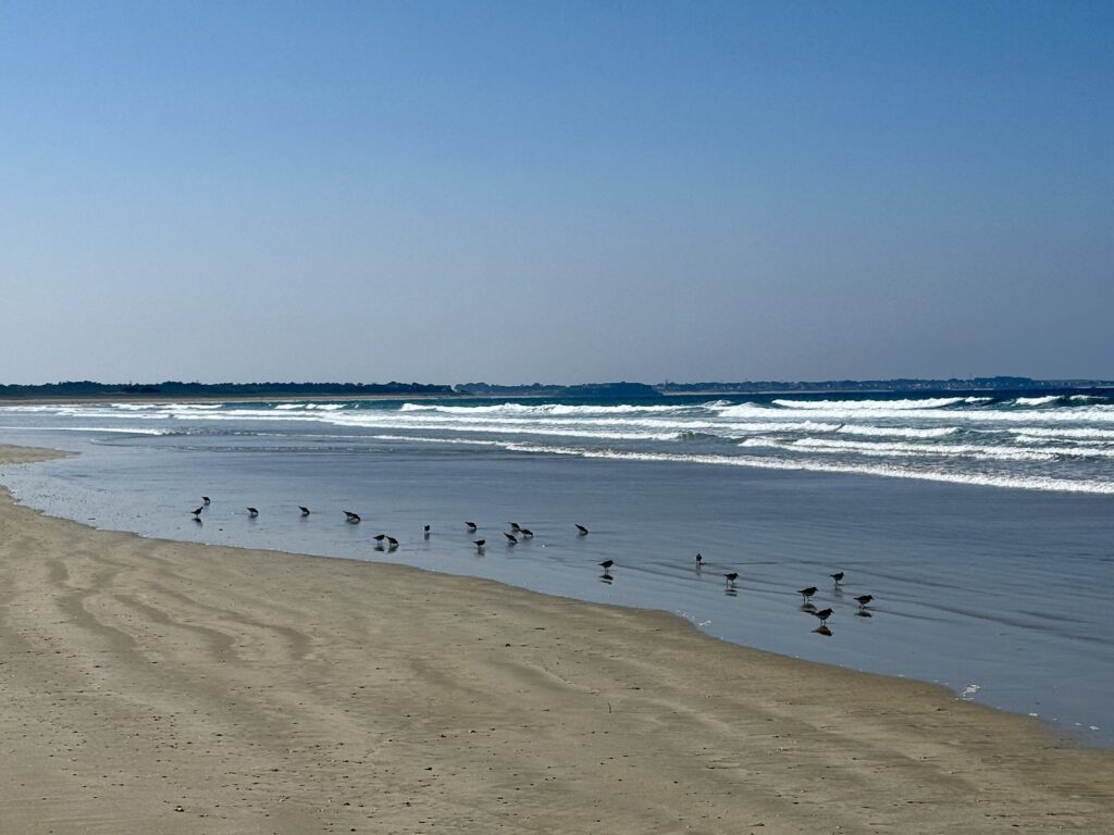 So und nun lag die ganze Halbinsel Quiberon mit dem schier unendlichen Strand vor mir. Bis zu zu meinem Hotel hiess das 10 km Strand wandern. Und am Strand sieht man so allerlei.