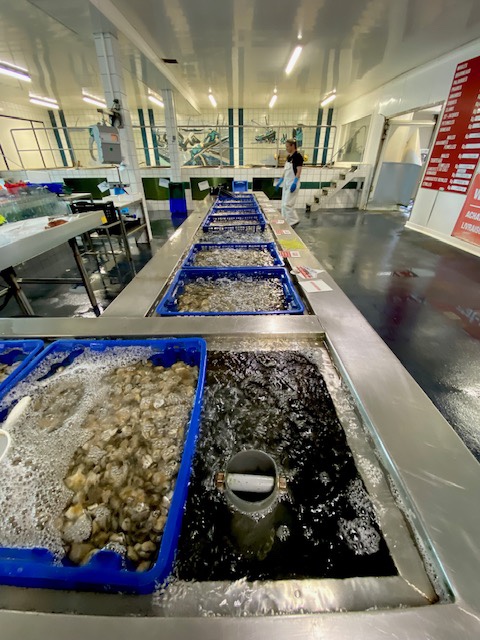 So gegen 11:00 kam ich an einer Austernfarm vorbei, aus der gerade zwei Männer mit vollen Plastiksäcken kamen. Beim einen schauten noch die Krabbenbeine zum Sack heraus. Da kann man sicher degustieren! Sie hatten eine riesige Auswahl – Austern in allen Grössen auch die Huitres Plates. Aber ich fass es nicht: die Madame erklärte mir das sei nur im Juli und August möglich. 🙄🙄🙄 Da steht man vor vollen Austern Körben und kriegt keine. Pardon aber ihr Franzosen sind schon etwas kompliziert und unflexibel.