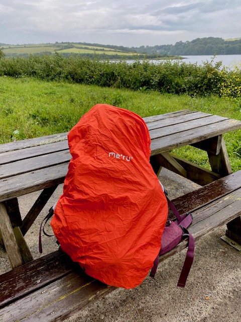 Aber es war eine sehr schöne Etappe, die mehrheitlich durch den wilden bretonischen Wald führte. Zwischendurch begann es mal zu regnen und ich musste meinem Rucksack das Regenmänteli anziehen.