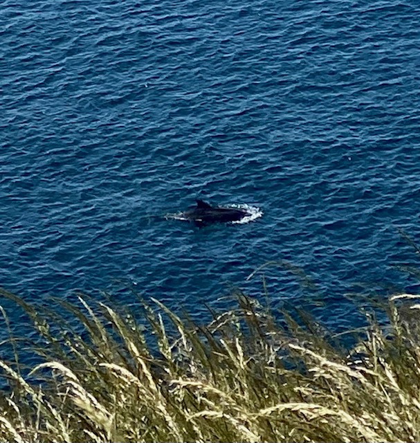 Immer wieder hielt ich Ausschau nach Delfinen und tatsächlich schwamm eine Gruppe gemächlich entlang der Küste vorbei.