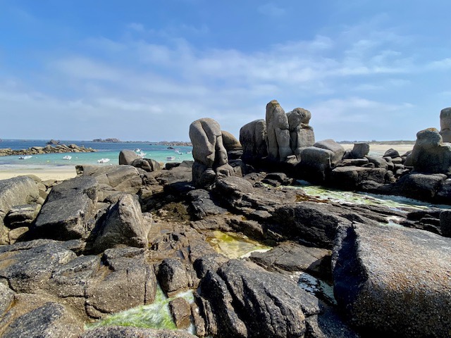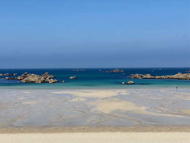 Ja was nun folgte, war wirklich einmalig schön. Der ganzen Küste entlang bis nach Guissény bot sich einem eine traumhafte Landschaft mit zerklüfteten Felsen, schneeweissen Sandstränden und Wasser in allen blau Schattierungen. Wie man gleich sieht, gab es verständlicherweise einige Foto Pausen.