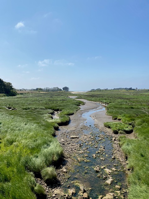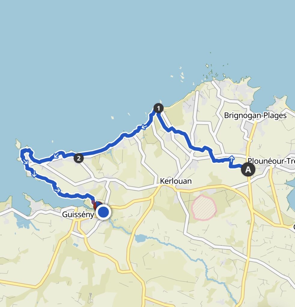 Da die Unterkunft nicht direkt am GR34 liegt führte mich der Weg zuerst quer Feld ein. Nach gut 5 km war ich wieder am Meer und in Ménéham.