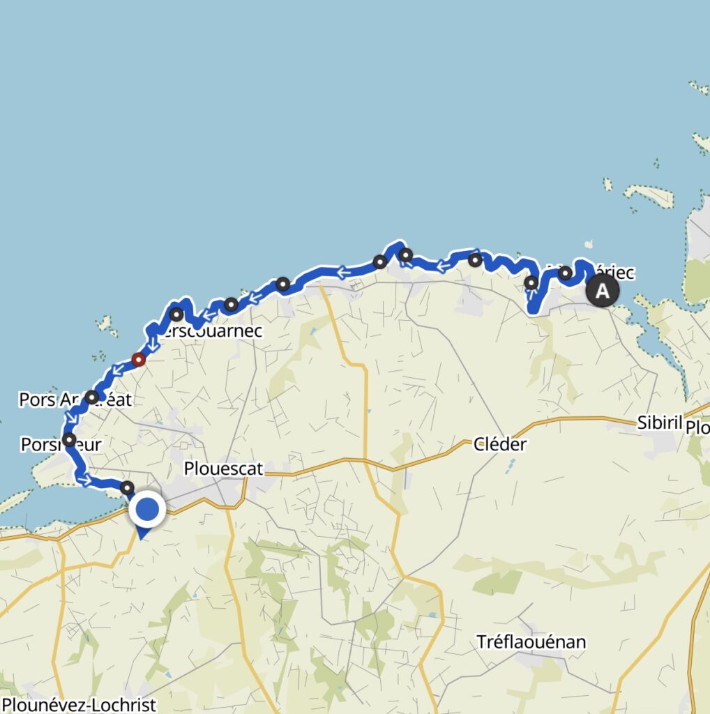 Um etwa drei Uhr war ich dann in Porsmeur und schon fast am Ziel. Im schönen Restaurant Roch Armor direkt am Strand habe ich dann eine längere Pause gemacht.