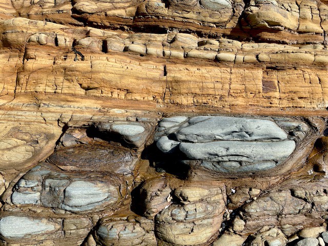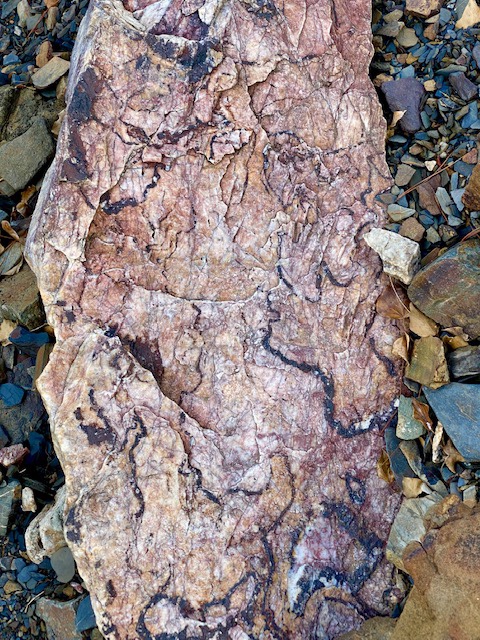 Einen kleinen Aber musste auch noch umrundet werden. Da wählte ich den Weg über die Felsen, war zwar etwas mühsamer, aber all die farbigen und kantigen Steine waren es wert.