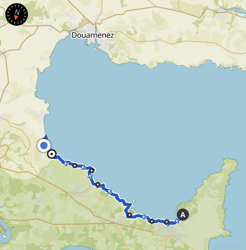In der Ferne konnte ich schon bald mein morgiges Ziel Douarnenez erkennen. Und ich glaube noch etwas weiter bereits die Spitze des Phare Eckmühl erkannt zu haben, wo meine letzte Etappe endet. Ja langsam aber sicher geht es dem Ende zu.