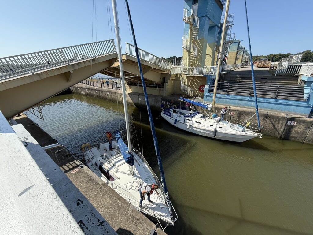 Da wurden gerade alle Schiffe schön zusammengebüschelt und hinten ging die Brücke wieder runter für den Verkehr.