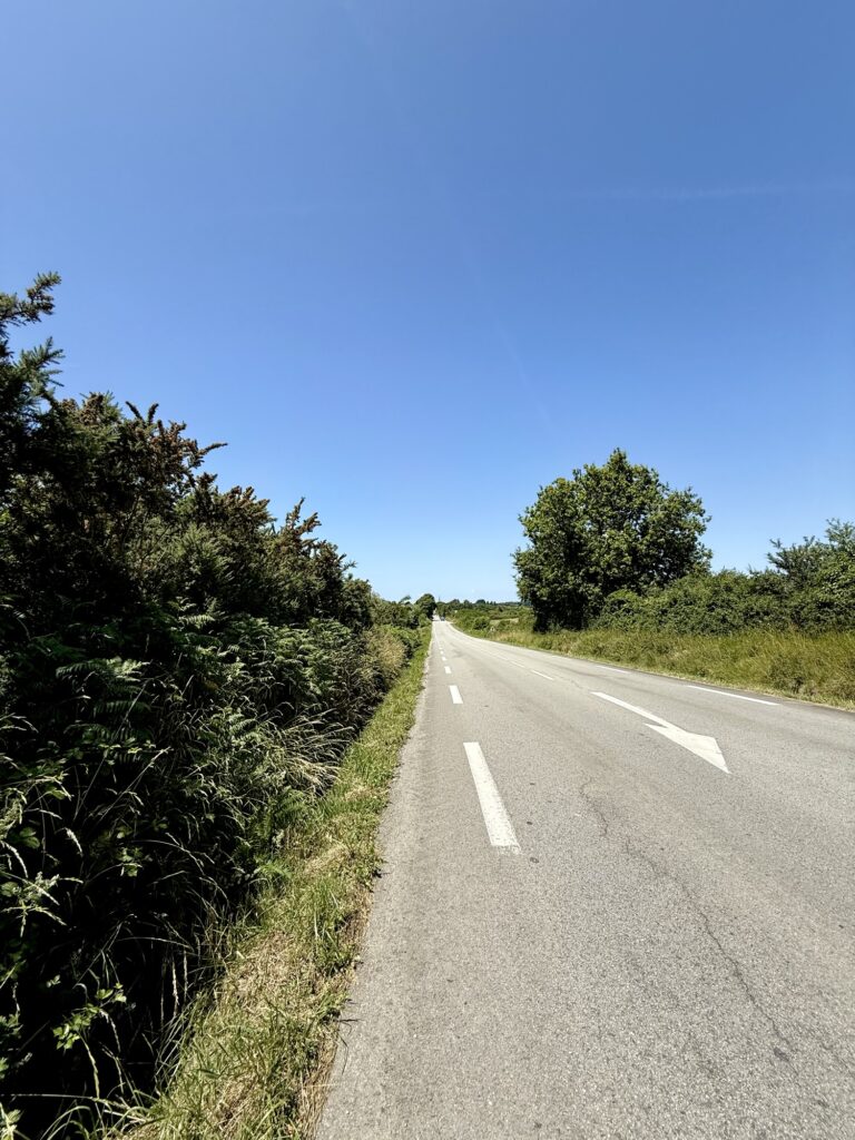 Ab hier führte der Weg nicht mehr der Küste nach, aber bis Camoël ging es auf schattigen Waldwegen weiter. Danach war dann allerdings Schluss. Ich hatte die Wahl einen grossen Umweg zu gehen oder die letzten 8 km ohne Schatten der Hauptstrasse entlang. Ich entschied mich dann wohl oder übel für letzteres. War natürlich nicht sehr angenehm, aber dafür war ich dann um drei Uhr am Ziel.