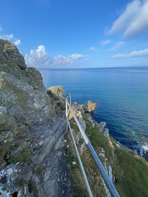 Zurück auf dem GR34 schaute ich zurück und sah hinter mir einen älteren Monsieur. Kurz darauf raschelte es ganz ungewöhnlich. Als ich mich umdrehte war le Monsieur disparu. 😳 Das mit dem Umkehren ist ja nicht so mein Ding, aber da konnte ich natürlich nicht anders. Waren ja auch nur etwa 3 Meter. 😉😂 Tja und da lag er dann im Gestrüpp etwa 2 Meter weiter unten. Wie ein Maikäfer auf dem Rücken. Zum Glück war das Gestrüpp sehr dicht und er konnte nicht weiter runterfallen. In der Zwischenzeit war dann auch seine Frau eingetroffen und sichtlich erstaunt ihren Mann da unten zu sehen. Wir haben ihn dann mit vereinten Kräften aus seiner misslichen Lage befreit. Am Arm hatte er ein paar blutige Kratzer, aber sonst schien er Glück gehabt zu haben. Bevor ich weiter ging, versicherte ich mich noch mal, ob sie wirklich alleine zurecht kämen. Aufgrund ihres Outfits, weisses T-Shirt und so, nehme ich an die beiden logieren im 4 Sterne Hotel und wollten nur einen kurzen Spaziergang zum Aussichtspunkt machen. Das Hotel hat übrigens eine schöne Bar, da kann er ja den Schreck am Abend mit einem Whisky runterspülen.