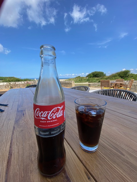 Nach etwa 10 km kam ganz unerwartet ein nobles 4 Stern Hotel. Den Namen Hotel de la Plage hat es zurecht – es ist wirklich direkt am Strand. Dort habe ich mich mit einer Cola gestärkt, man weiss ja nie was noch kommt.