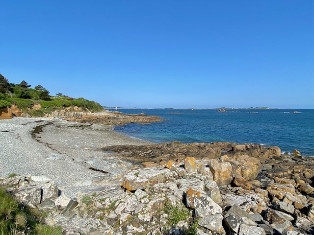 So spät wie heute bin ich noch nie los. Beim Frühstück waren neben dem Paar aus La Chaux-de-Fonds noch zwei junge Frauen aus Rennes, die auch für ein paar Tage entlang des GR34 wandern. Auch heute morgen wurde wieder angeregt geplaudert. Als ich mich dann um 10 Uhr auf den Weg machte, standen alle parat um mich mit vielen guten Wünschen zu verabschieden. Am Gewicht meines Rucksackes waren sie alle sehr interessiert und haben ihn alle mal kurz angehoben und sich gefragt wie schwer er wohl ist. Zwischen 9 und 10 kg müsste er sein, teilte ich den Herrschaften/ Frauschaften mit. Die Hausdame wollte es genau wissen und holte kurzerhand eine Personenwaage. Et voila er war irgendwas zwischen 9 und 10 kg. Jack aus La Chaux-de-Fonds begutachtete noch meine Wanderschuhe und meinte, man sehe dass sie schon ein paar Kilometer hinter sich hätten. Ich beklagte noch, dass sie leider nicht wasserdicht seien. Er klärte mich dann auf, dass die Bezeichnung wasserdicht nichts heisse (habe ich auch gemerkt) es müsse schon Corotex stehen. Tja jetzt isch scho zspat! Die nächsten dann! Übrigens habe mal noch eine halbe Dose Imprägnierungsspray über meine Wanderschuhe gesprüht, hat auch nicht viel gebracht.
