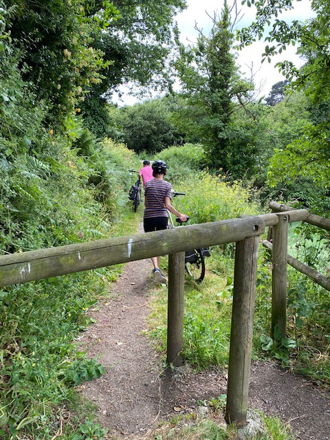 Wie man auf dem Foto sieht, war das etwas schwierig hier mit dem E-Bike durch zukommen. Er probierte verschiedene Arten um diese Pfosten herumzukommen, aber es wollte einfach nicht klappen. Da kam sein Frau von hinten und zeigte ihm wie‘s geht. Elegant neigte sie ihr Velo und schob es mühelos untendurch. Voilà 💁🏻♀️