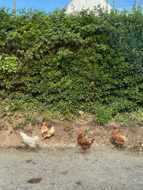Bin heute in einer privaten Unterkunft – wenn ich aus dem Fenster schaue sehe ich die Hühner „ume hühnere“.
