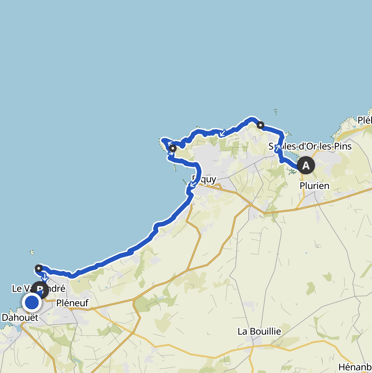 Auf den letzten paar Kilometer machte mir mein Knie recht mühe und so kam ich nicht mehr so schnell vorwärts. In Pléneuf-Val-André angekommen, steuerte ich gleich die erste Apotheke an und kaufte eine Tube Voltaren Forte und entzündungshemmende Tabletten. 🙈Morgen ist zum Glück Ruhetag!!!
